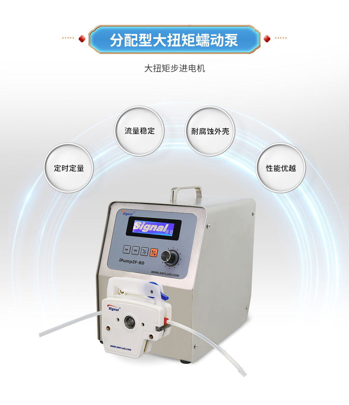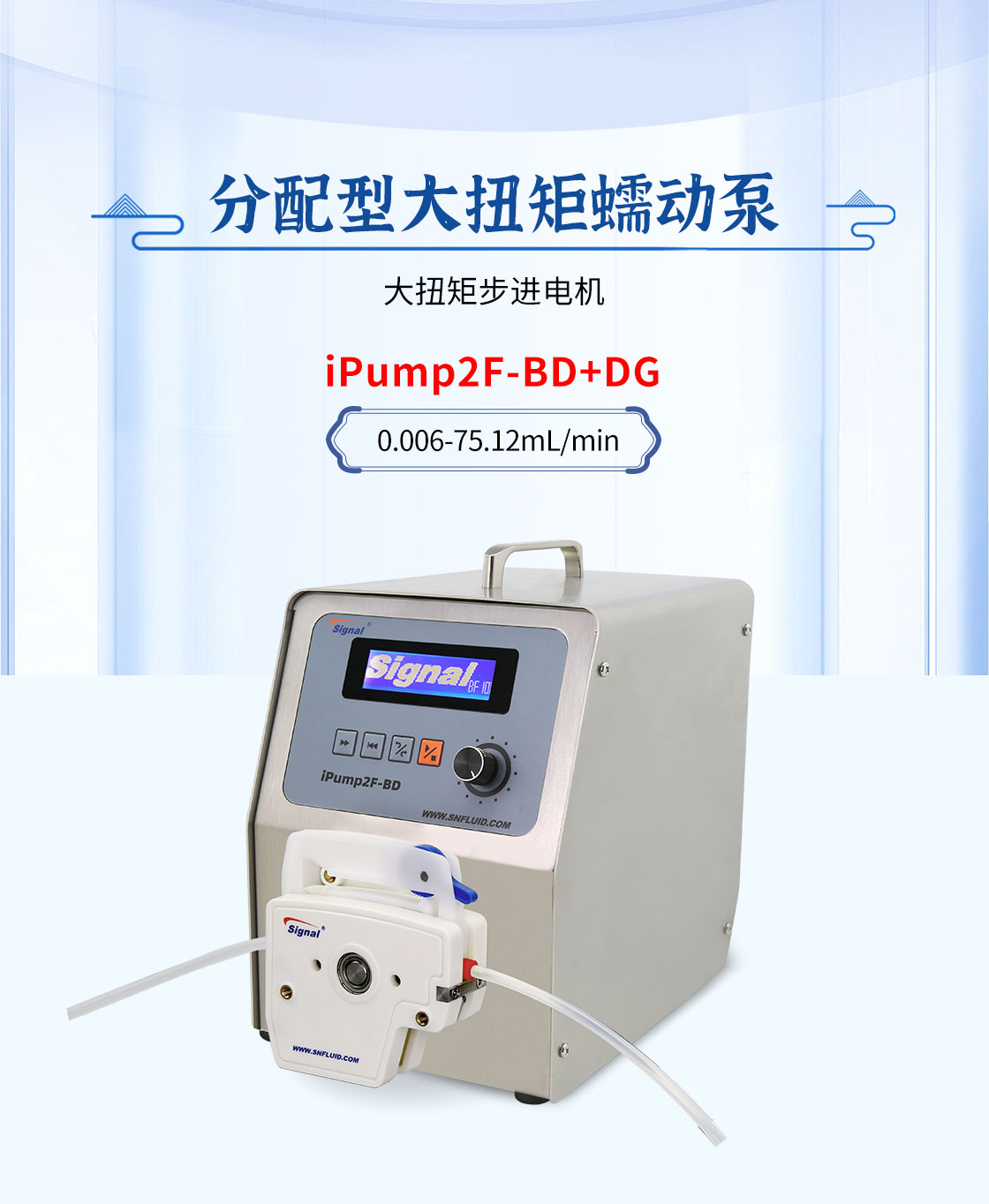 2.大扭矩步進電機驅動,適合多泵頭串聯使用;