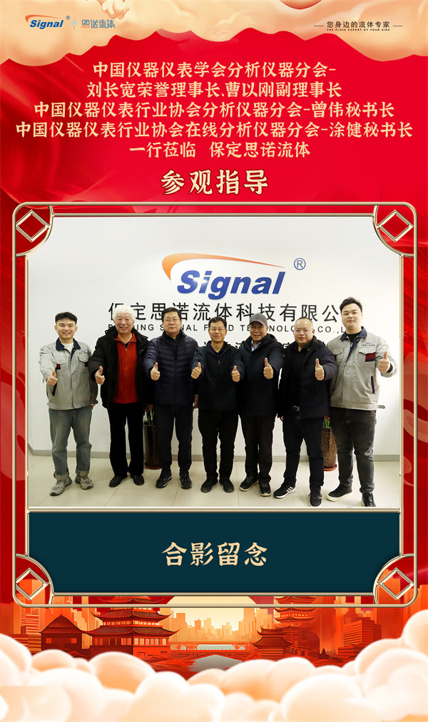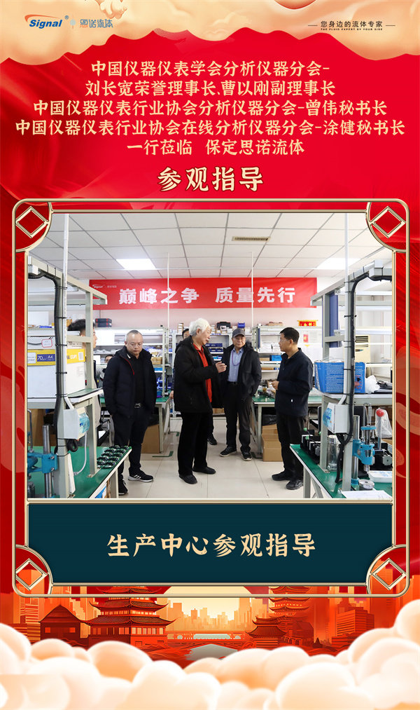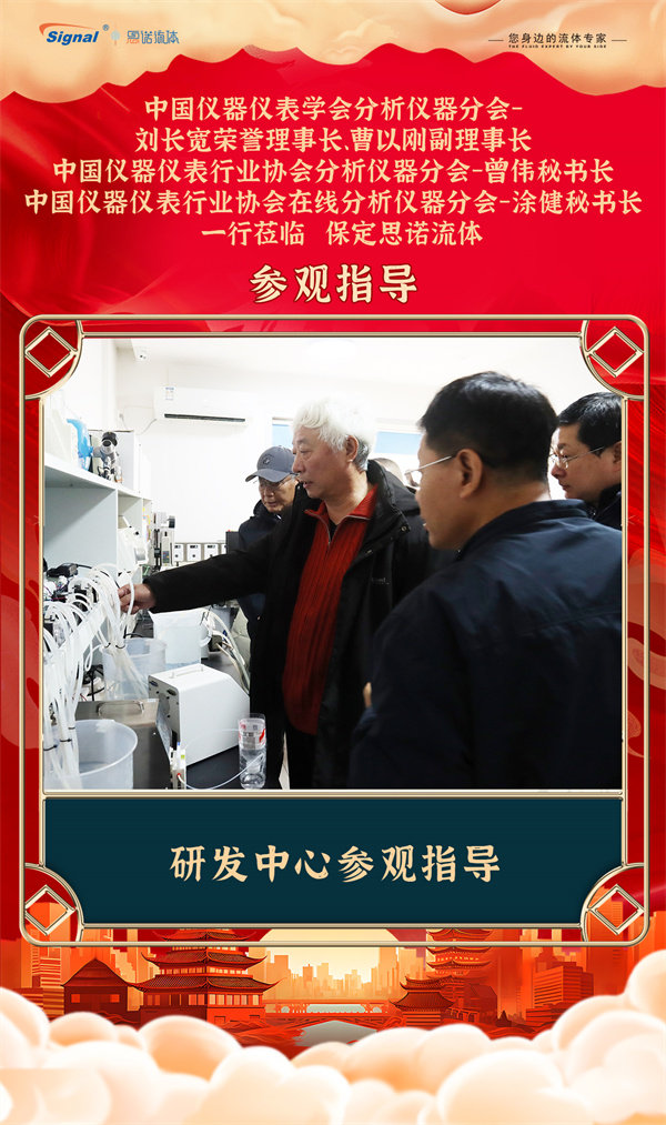 寒冬不寒,情暖人心!2025年12月19日,中國儀器儀表學(xué)會分析儀器分會-劉長寬榮譽理事長、曹以剛副理事長、中國儀器儀表行業(yè)協(xié)會分析儀器分會-曾偉秘書長、中國儀器儀表行業(yè)協(xié)會在線分析儀器分會-涂健秘書長一行蒞臨保定思諾流體參觀指導(dǎo)!公司管理層及相關(guān)部門負責人對貴賓的到來表示熱烈歡迎,并全程陪同交流參觀。