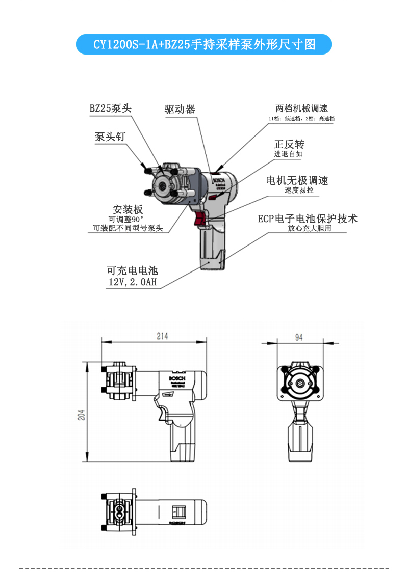 ●充電式電源,標配電池2塊,電壓12V續航時間長;適用于室內外流體采樣,應急傳輸或無電源的場所。
